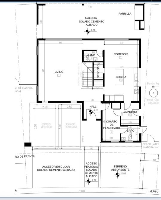 Entrada y escalera realizadas en cemento alisado.