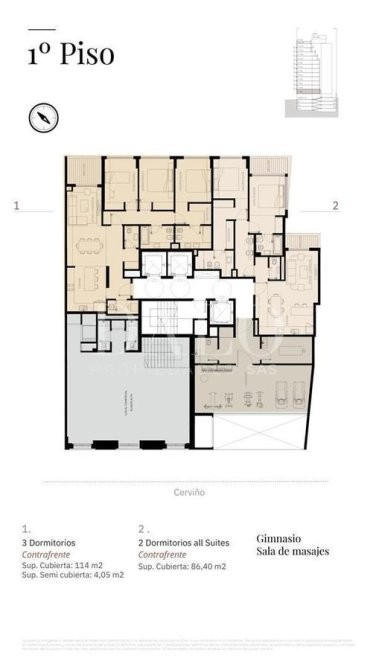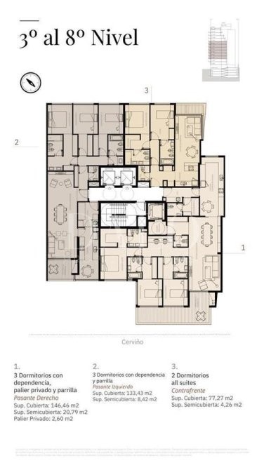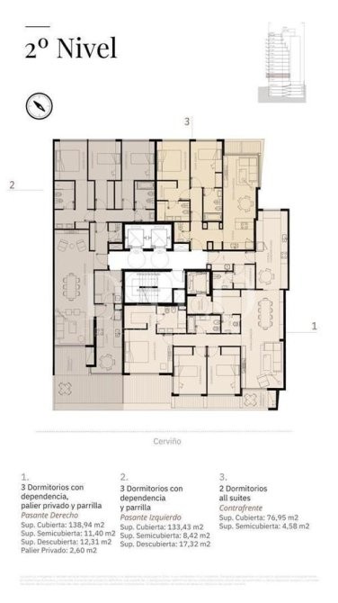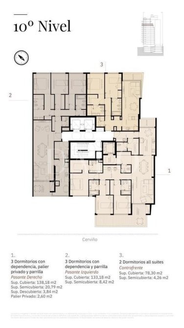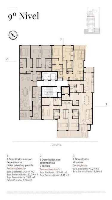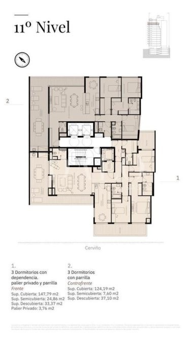 El proyecto contará con 13 niveles de unidades de 2 y 3 dormitorios. Entre sus amenities se destacan: Gimnasio, SUM, Solarium, Piscina, Sala de Masajes, Área de Parrillas, Seguridad 24hs y Bike Parking.