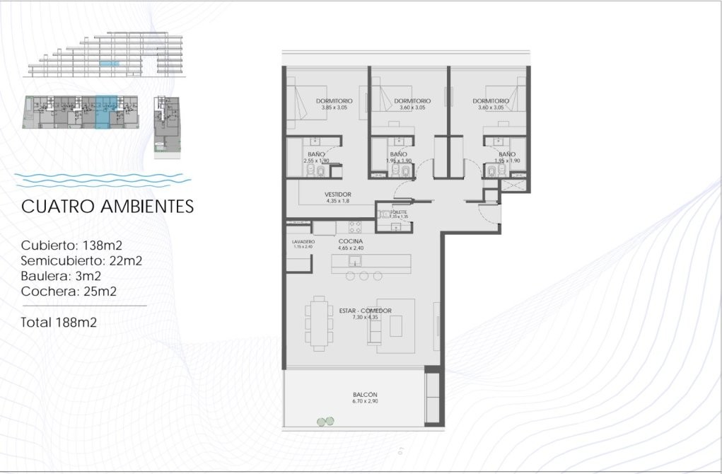 Emplazado sobre la Av.del puerto con sus principales orientaciones y aterrazados hacia la costa, Acqua Marinas busca vincular a partir de visuales, la vivienda