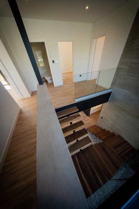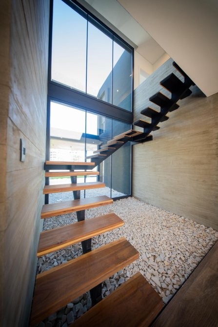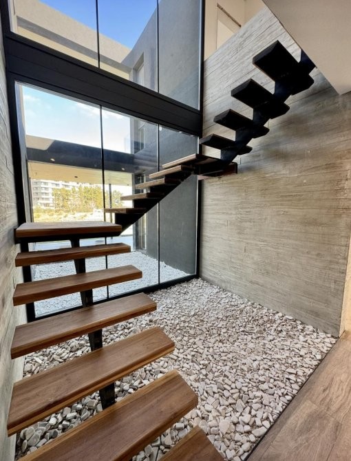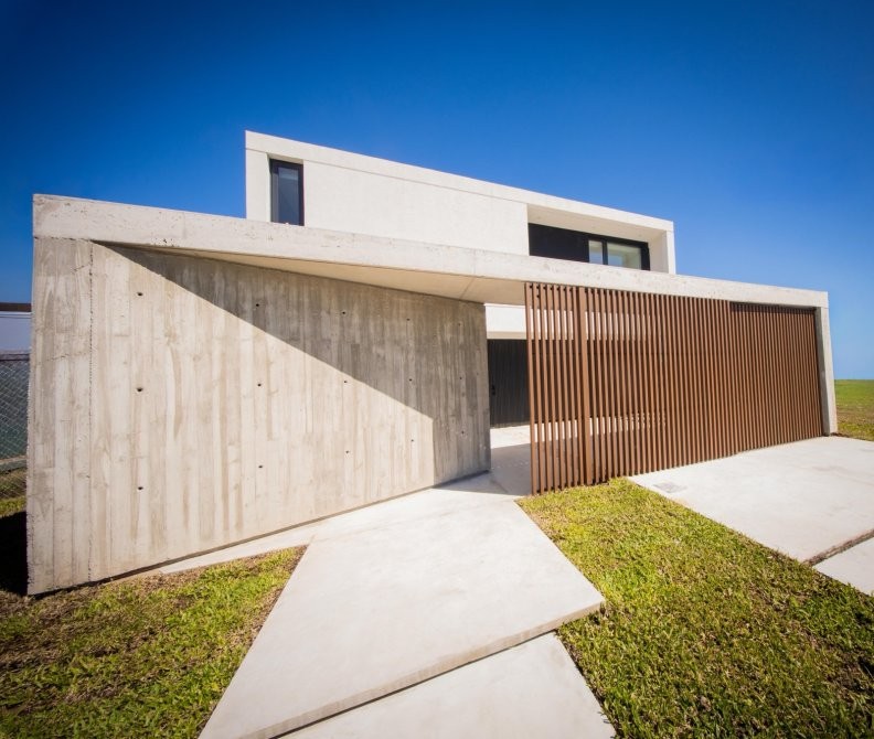 Con 240 m² cubiertos y 60 m² semicubiertos, se destaca por su arquitectura de construcción tradicional, hormigón visto y detalles en revestimiento WPC, logrando una estética contemporánea y sofisticada.