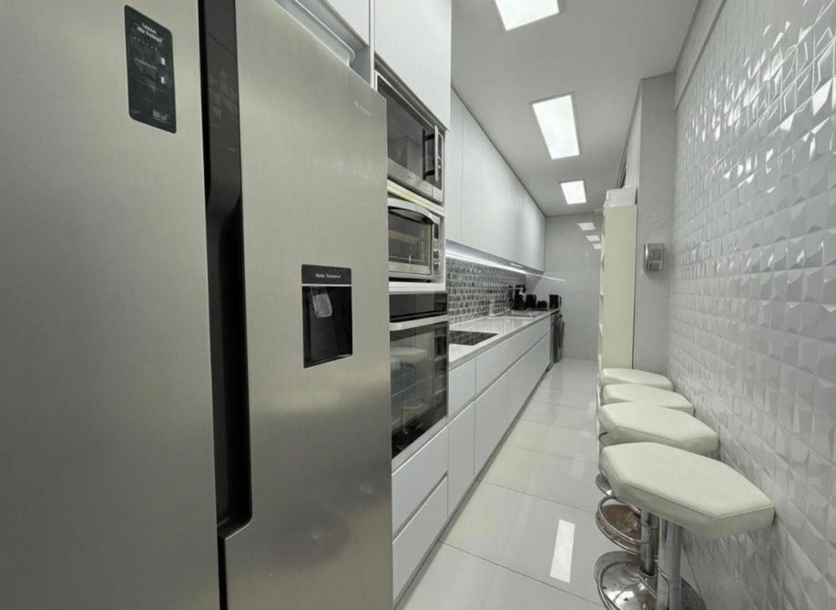 - Heladera doble puerta, horno microondas Blast Whirlpool, horno eléctrico y horno a convección Samsung