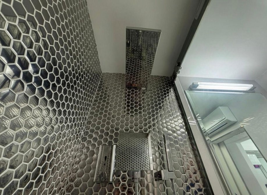- Todo en blanco y acero, generando una atmósfera de calma y descanso visual