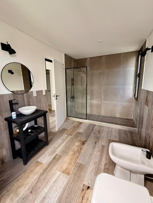 Posee tres dormitorios, uno en suite, dos baños completos y toilette.