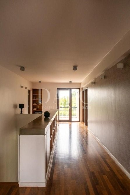 En Planta baja nos encontramos con un hall de distribución, toilette de recepción de mármol negro. Un amplio living con pisos de porcelanato suizo ( Travertino) de Patagonia Flooring. Con grandes ventanales que recorren el mismo y con vista a la lago central y al jardín.