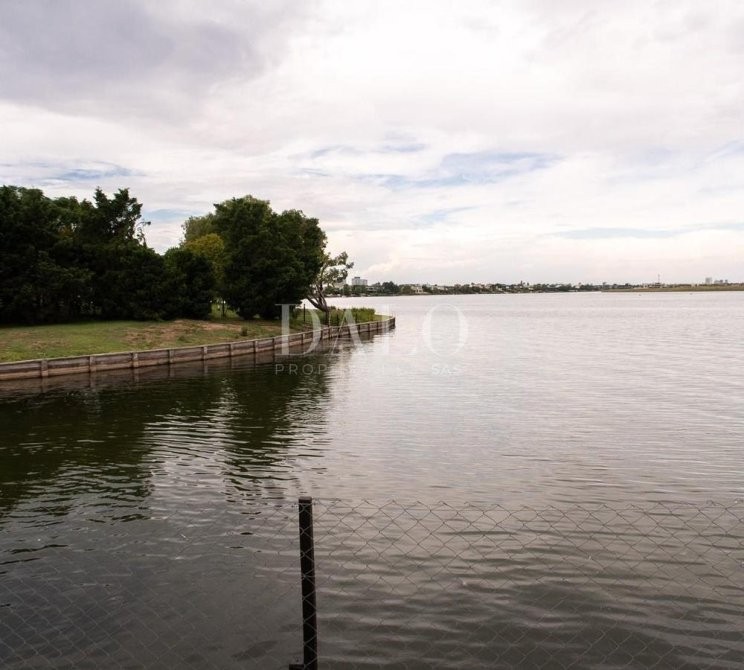 El jardín da al lago central, tiene riego automático y 80 metros de costa.