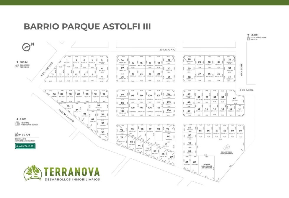 El desarrollo se encuentra ubicado a pocas cuadras del centro comercial de Astolfi, un pueblo tranquilo, donde podrás encontrar una escuela pública y una plaza. Es un barrio ideal para proyectar tu hogar junto con tu familia.