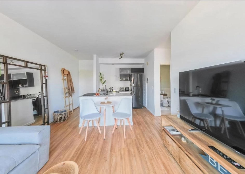 Departamento de 2 ambientes, con orientación interna, 7 años de antigüedad y una excelente distribución: 50 m² totales, de los cuales 46 m² son cubiertos. Cuenta con una cochera fija incluida