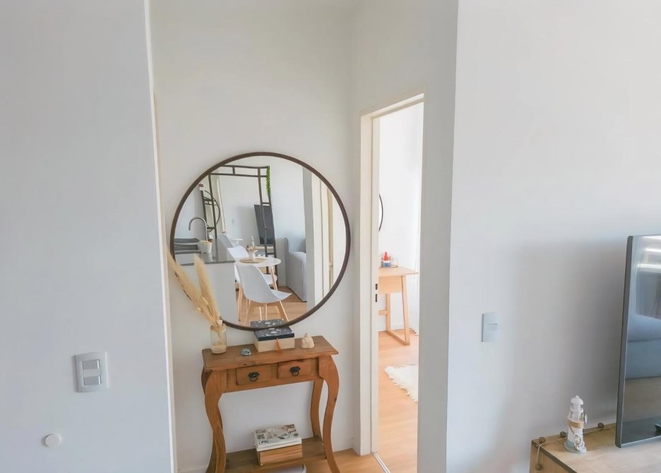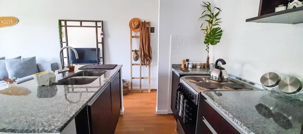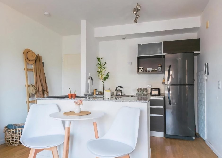El living-comedor, integrado con la cocina, ofrece una distribución inteligente y cómoda. Gracias a su orientación interna, el ambiente disfruta de altura óptima en el techo y buena iluminación, ideales para el día a día y para el disfrute de ambientes cálidos y acogedores