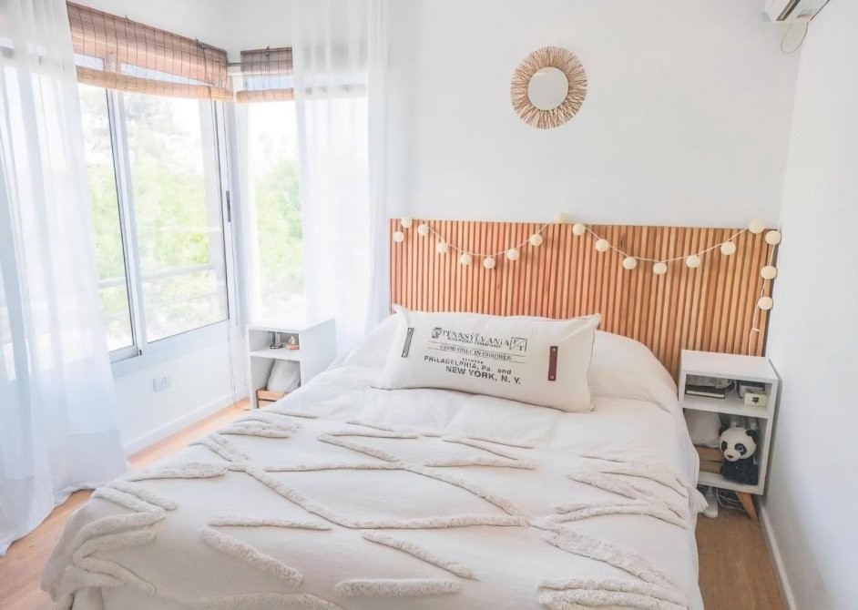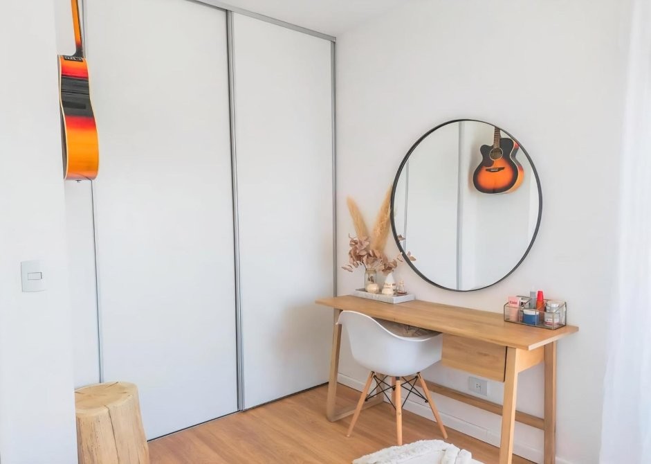 Un dormitorio principal con placard incorporado y un baño completo conforman la zona íntima, ofreciendo privacidad y practicidad