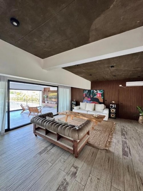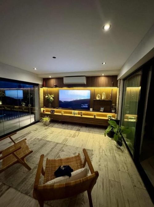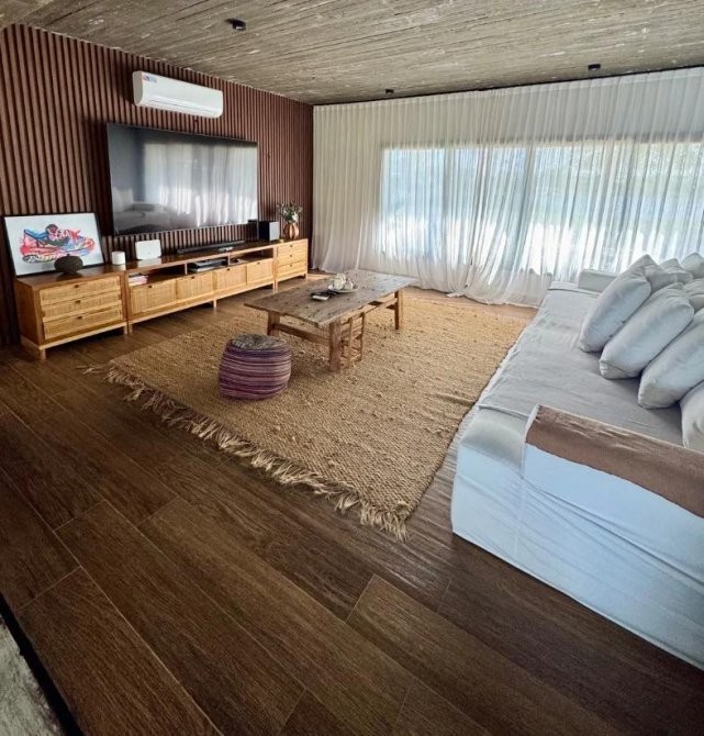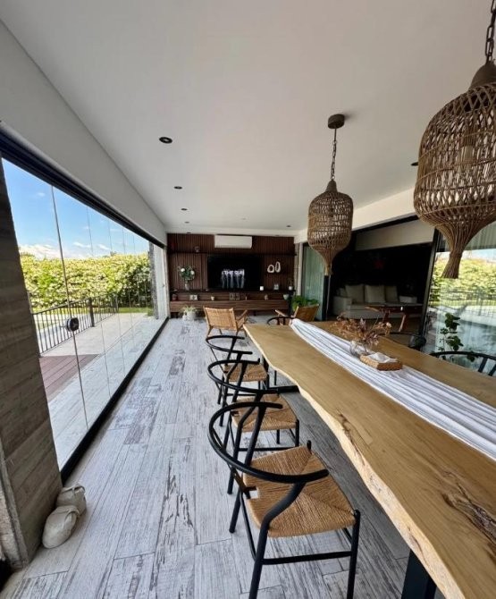 La casa se entrega totalmente amoblada, con muebles premium, televisores (hasta 95”), nueve aires acondicionados y calefacción por losa radiante. También incluye las cortinas, el Gym, muebles de exterior, heladera, etc.