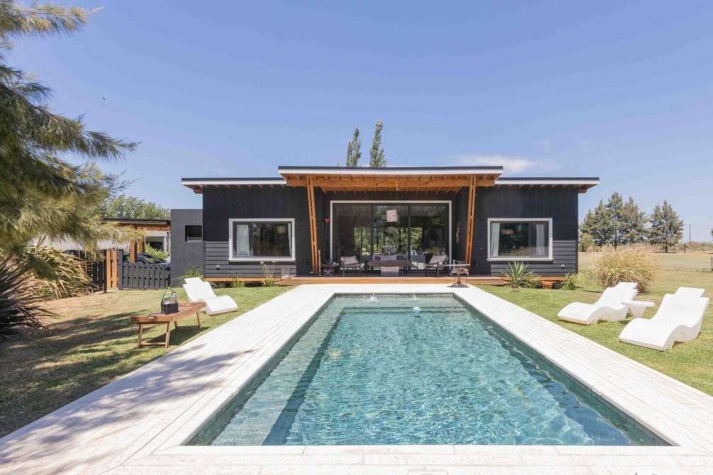 Casa moderna estilo californiano en Fincas de San Vicente Golf | Pileta Bali, galería y vida indoor-outdoor