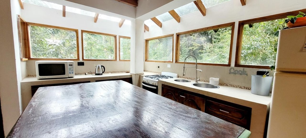 P.B: amplia cocina con ventanales al bosque, living - comedor, y baño completo