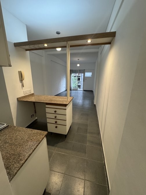El ambiente principal es amplio y funcional, con cocina separada mediante barra desayunadora, lo que permite delimitar espacios sin perder integración ni amplitud. Cuenta con muebles de guardado..