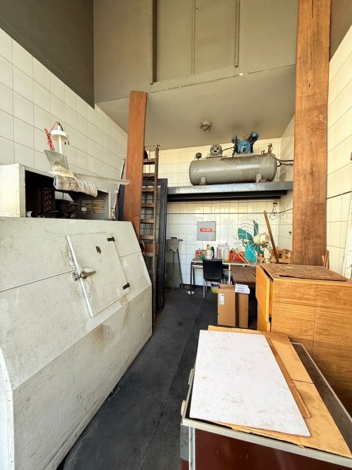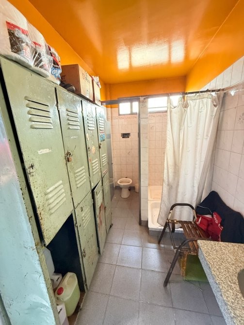 En planta alta se encuentran los vestuarios para el personal, oficina privada, amplia con baño, aire acondicionado y camaras de seguridad. Otro espacio de guardado y vestuario