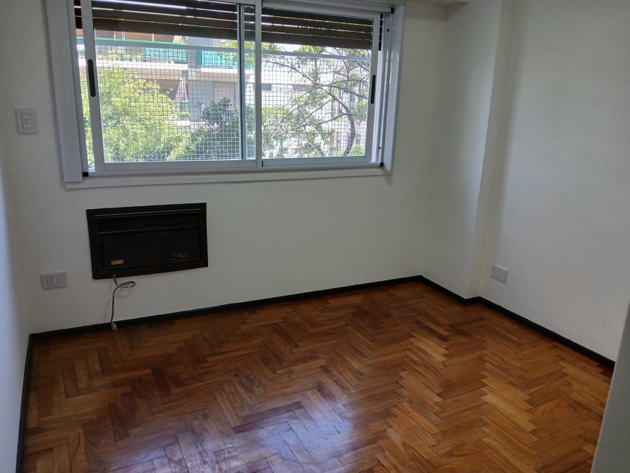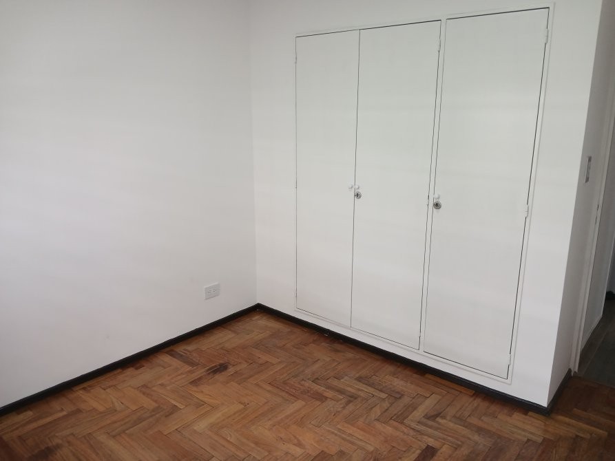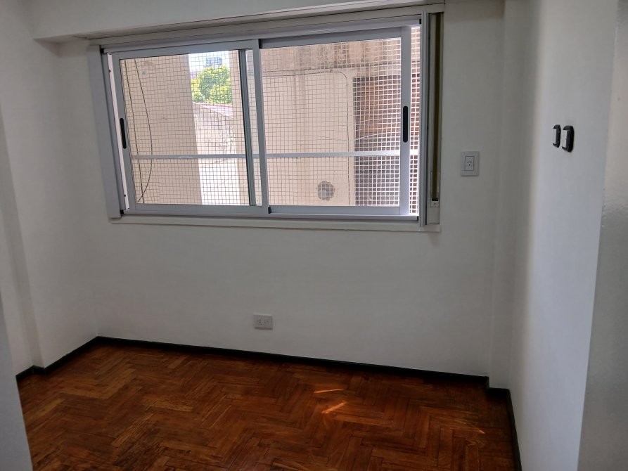 Habitación secundaria al contrafrente de 3 x 3, con piso de parket recién plastificado y placard empotrado reciclado a nuevo.
