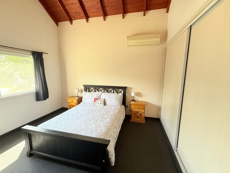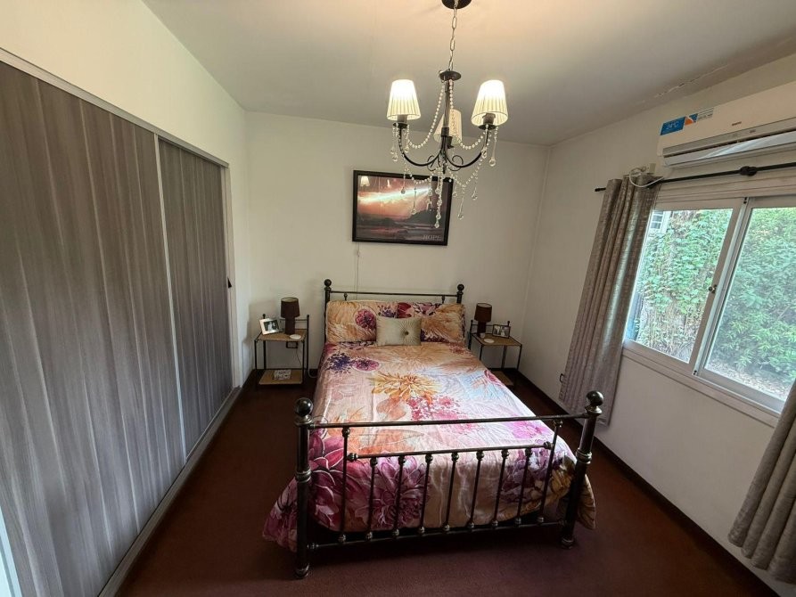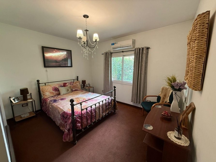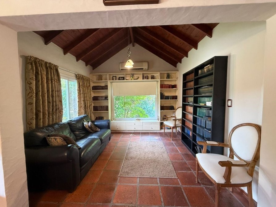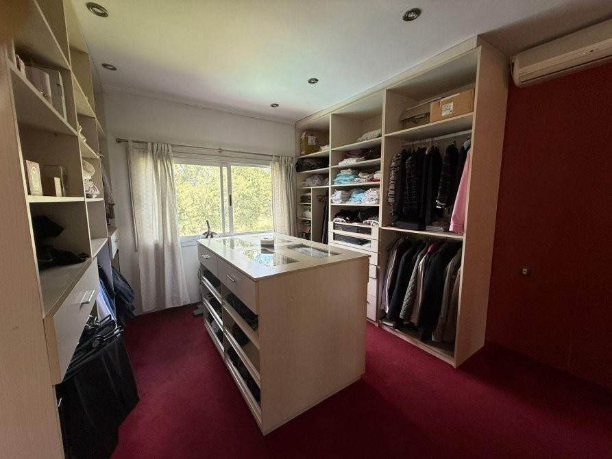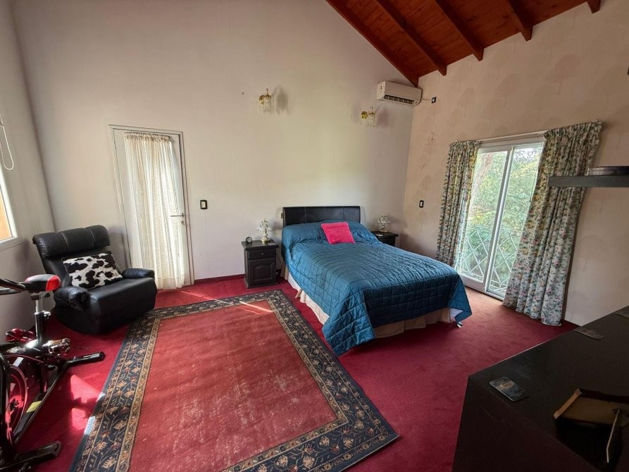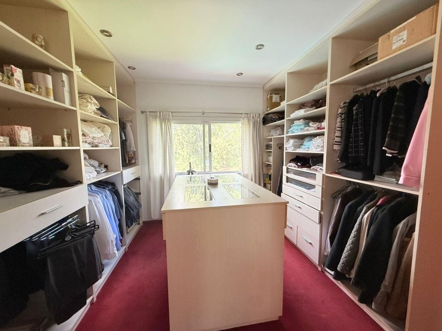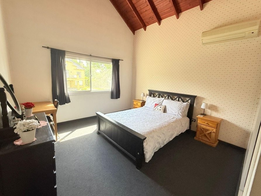 En planta alta se desarrolla la master suite, con un amplio vestidor, baño con hidromasaje y salida a balcón con vistas abiertas. Además, posee dos dormitorios secundarios de cómodas dimensiones y un baño completo con bañera.