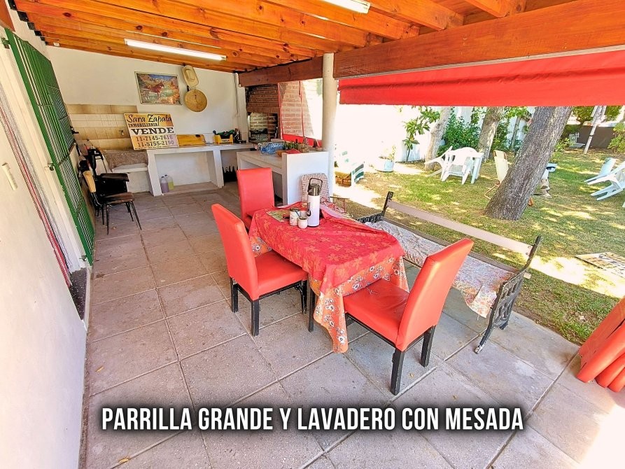 ~ GALERÍA al frente de la casa con piso de hormigón, parrilla grande con mesada, lavadero con mesada.