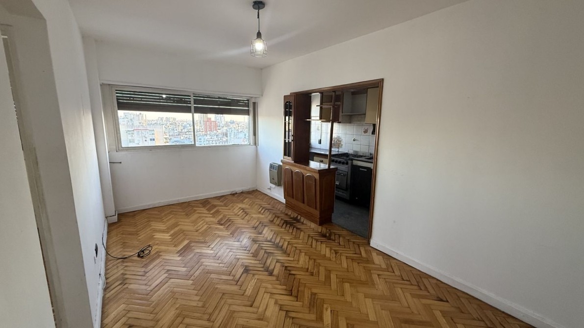 Departamento de 3 ambientes de 43 m2 aprox. en el piso 14. Living-comedor, cocina con desayunador y con conexión de lavarropas, baño completo con bañera, 2 habitaciones. Placar embutido en una de las habitaciones. Pisos de parquet en muy buen estado.