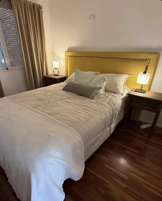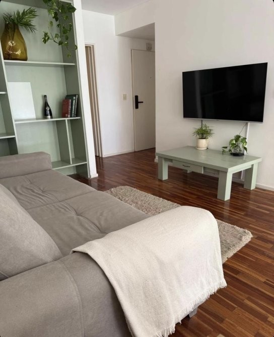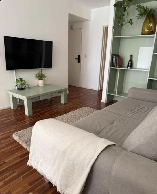 El dormitorio, cómodo y bien resuelto, dispone de placard de generosas dimensiones, aire acondicionado frío/calor y Smart TV, mientras que el baño completo con bañera combina diseño y funcionalidad. La propiedad se entrega con blanquería completa, lista para habitar o comenzar a rentar sin necesidad de equipamiento adicional.