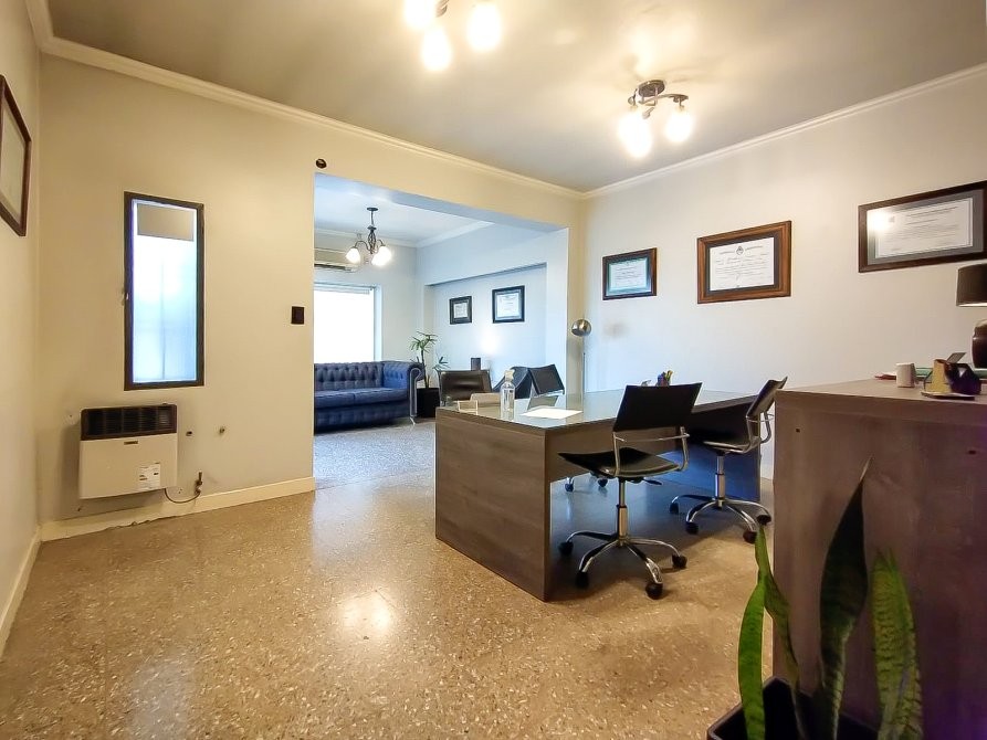Esta propiedad, ubicada estratégicamente en Avenida Sarmiento 2939 de Castelar, se presenta como un inmueble de notable versatilidad, ideal tanto para uso profesional como para convertirse en una confortable vivienda familiar. Con una antigüedad aproximada de 40 años y una reforma integral realizada hace unos 5 años, su estado general es muy bueno. El desarrollo, sobre un lote de aproximadamente 90 m² con 80 m² cubiertos y orientación sur, aprovecha al máximo el espacio disponible. Actualmente configurado como oficina comercial de 3 ambientes, cuenta con una funcional distribución que incluye una recepción al frente, una oficina privada, una amplia sala de firmas, un baño completo con ducha, una cocina tipo kitchenette y un práctico cuarto. Los materiales empleados son de calidad, con pisos de granito y parquet en los ambientes principales, y cerámicos en zonas de servicio. Además, ofrece un jardín frontal y un patio trasero parcialmente parquizado que conduce a una espaciosa terraza transitable con membrana, la cual presenta una excelente posibilidad de expansión. Su mayor atributo radica en su potencial de reconversión: con intervenciones mínimas, puede transformarse fácilmente en una vivienda familiar de 4 ambientes, con living-comedor, cocina-comedor, tres dormitorios y el mismo baño completo. Su ubicación es inmejorable, a sólo 5 cuadras de la Avenida Santa Rosa, 13 cuadras de la estación Castelar y 14 del Acceso Oeste, en una zona de alto tránsito y dinámica mixta comercial-residencial. Con todos los servicios disponibles y sin expensas, esta propiedad representa una oportunidad única para inversores, profesionales o familias.