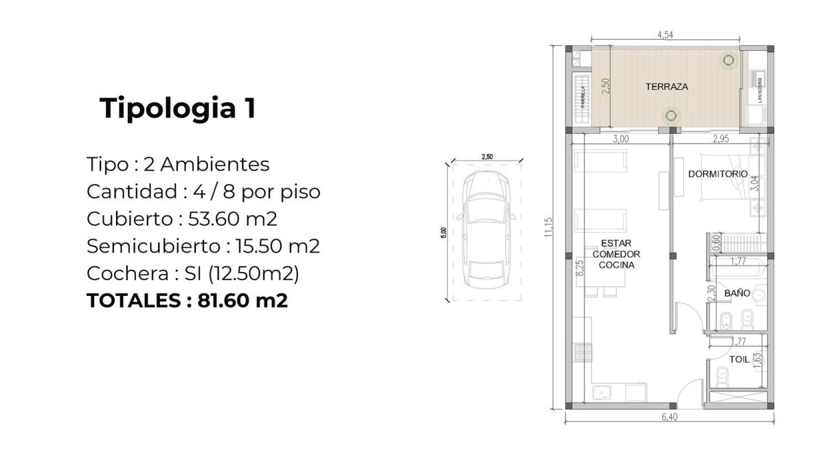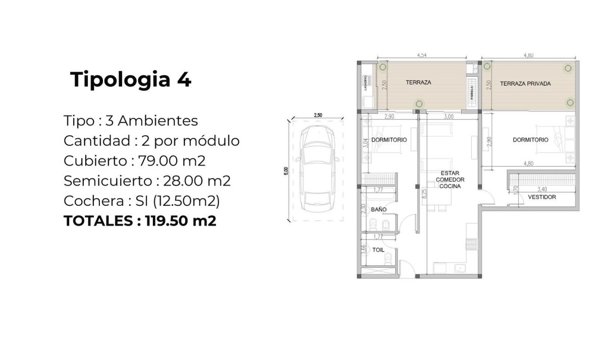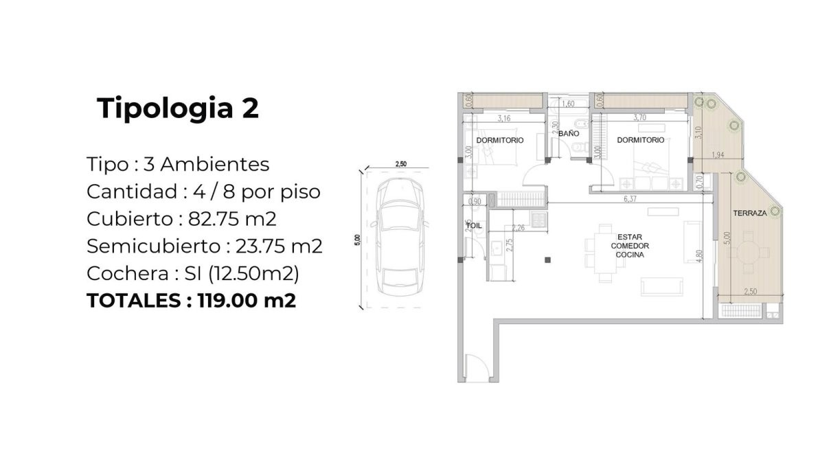 • Cochera propia: 12,50 m²