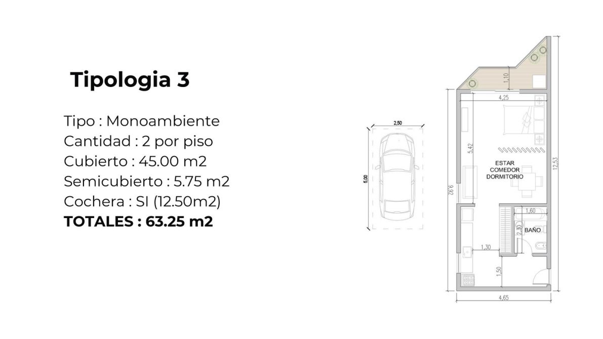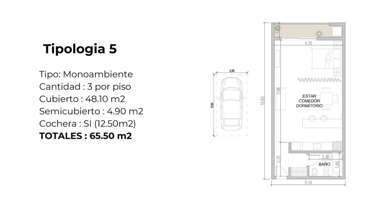 CARACTERÍSTICAS DEL DEPARTAMENTO " toplogia tipo 5" monoambientes