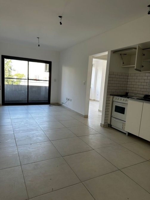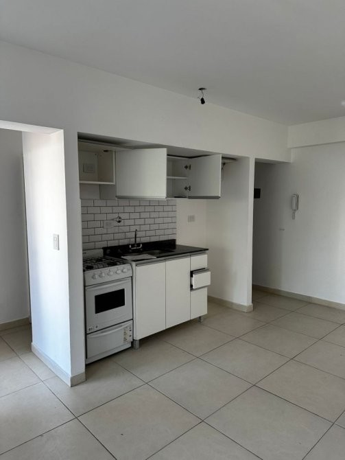 La cocina está totalmente equipada con muebles bajo, alacena y artefacto de cocina a gas de 4 hornallas. El living comedor se conecta con un balcón que ofrece una hermosa vista a la ciudad de Banfield.