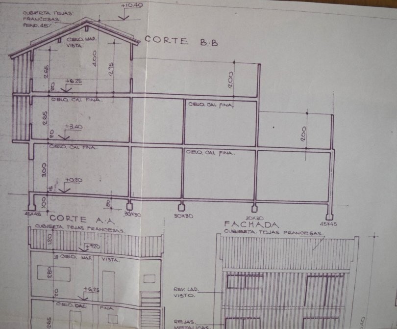 Distribución en tres plantas con accesos por escalera.