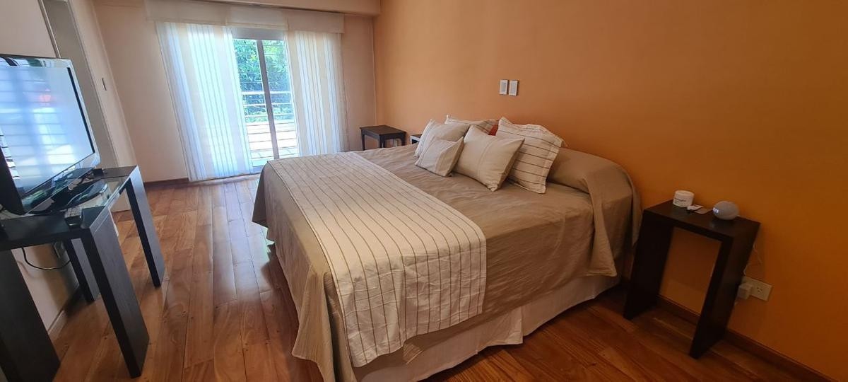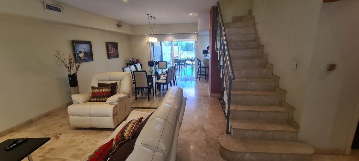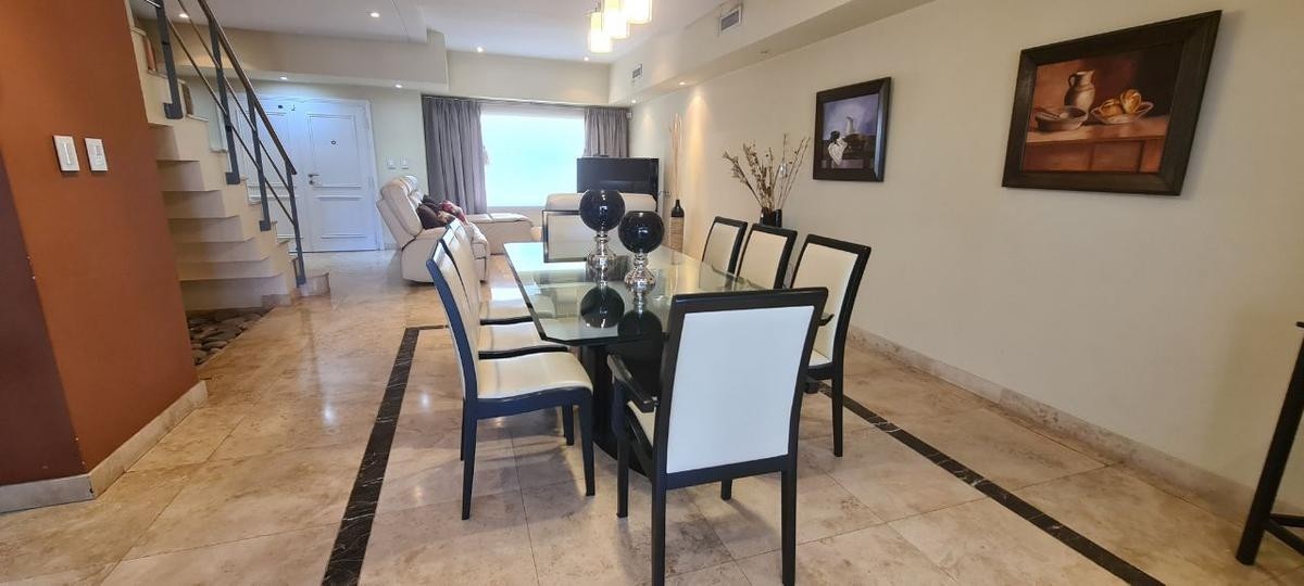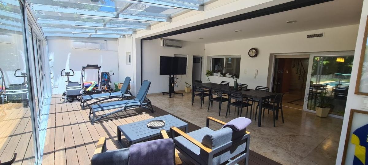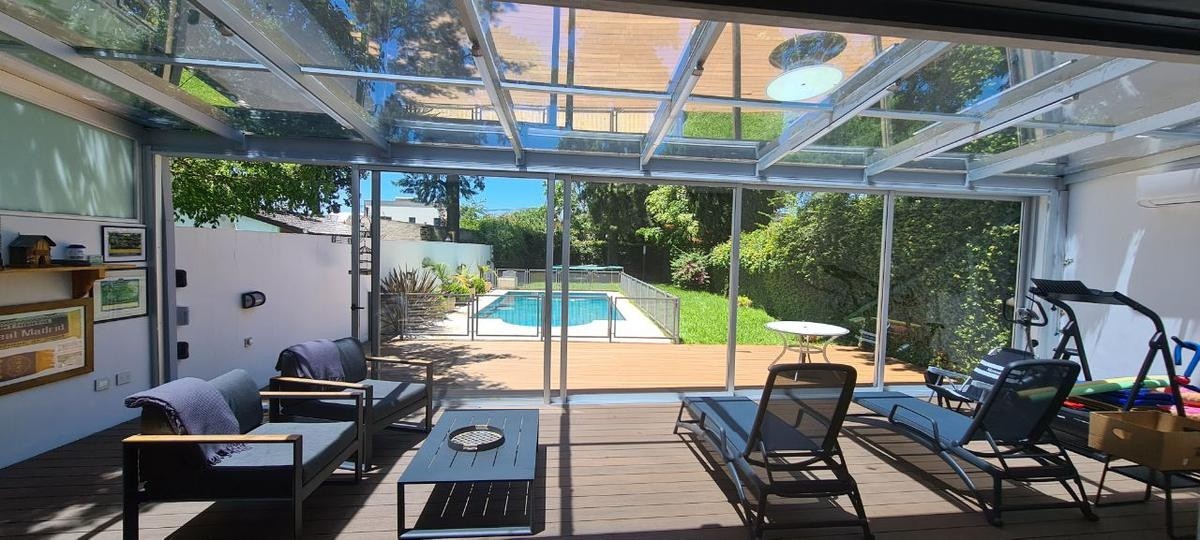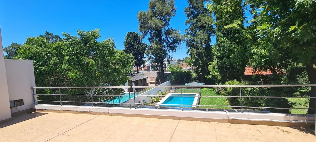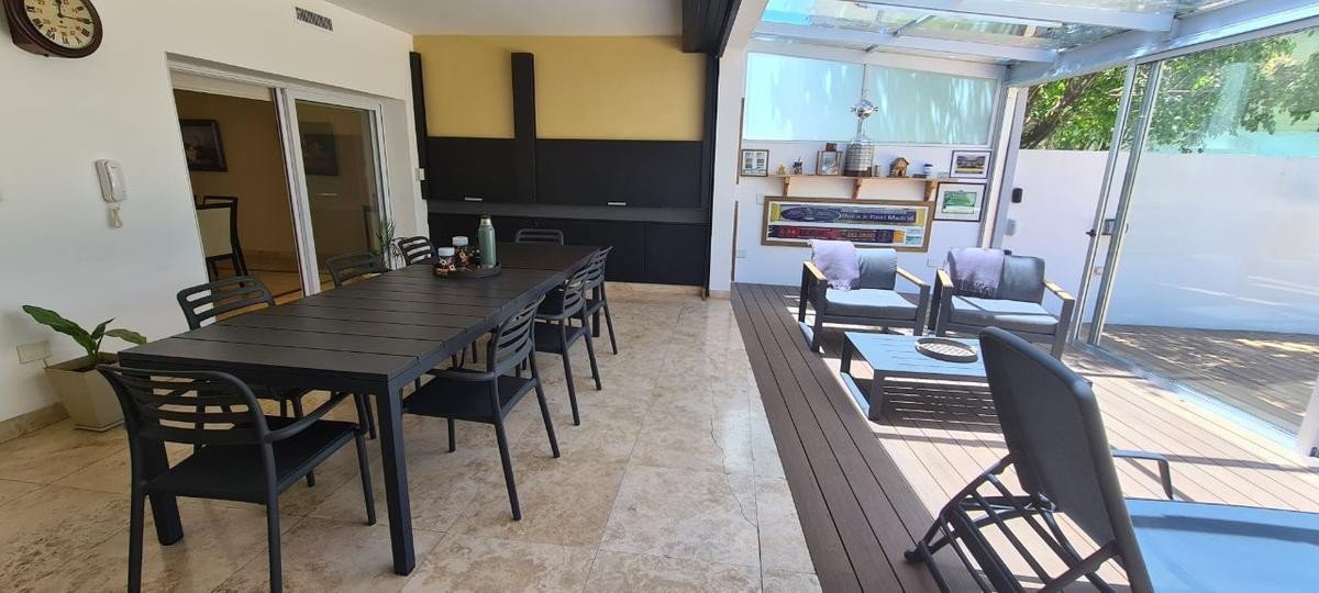 La misma se desarrolla en dos plantas, en su planta baja dispone de  un amplio living comedor con cocina semi integrada, ambos ambientes muy luminosos con salida a la galería con parilla. A  continuación se encuentra un hermoso jardín de Invierno con vista al parque, toilette, lavadero , piscina. Cochera cubierta  para un auto y entrada para otro.