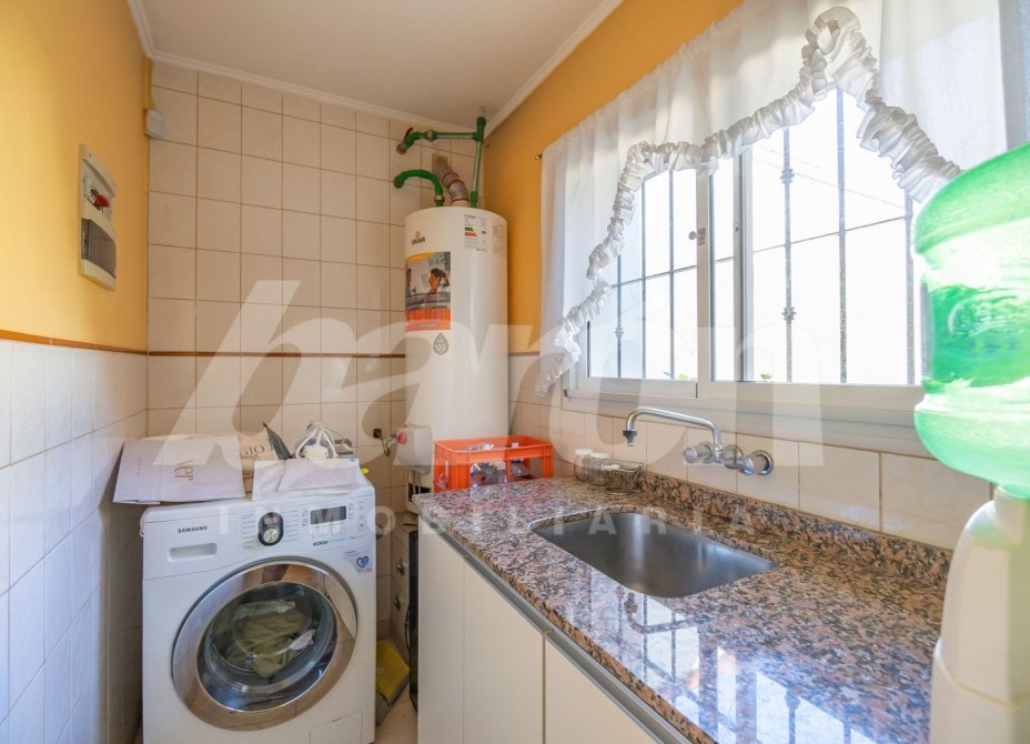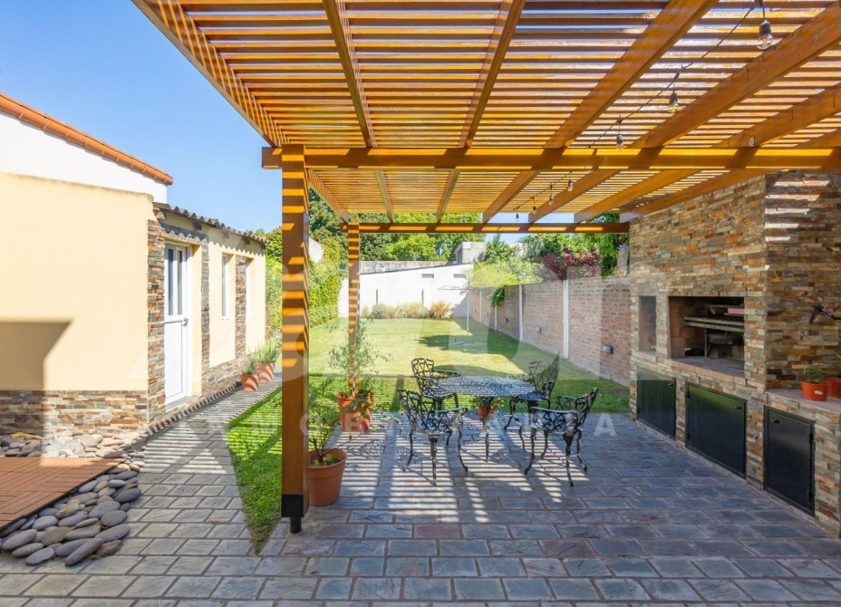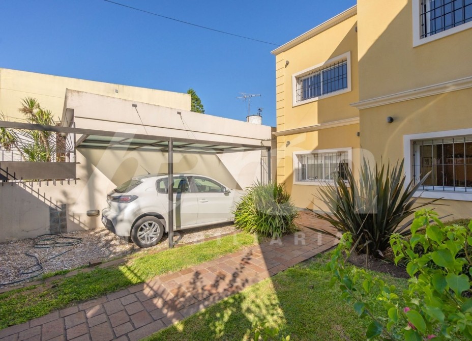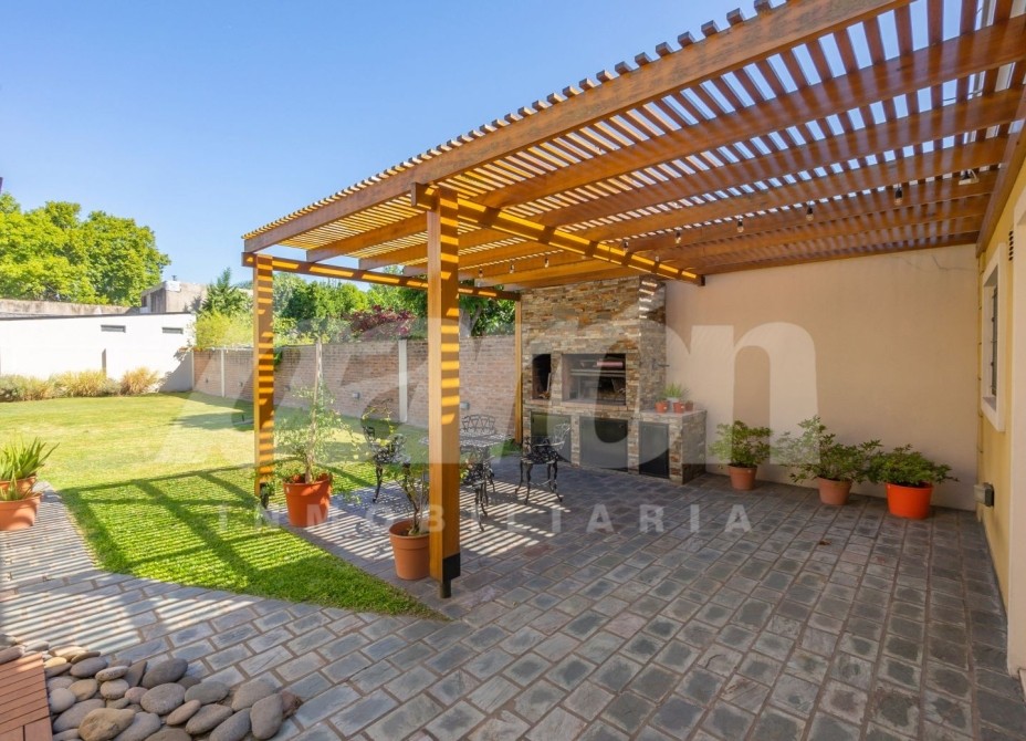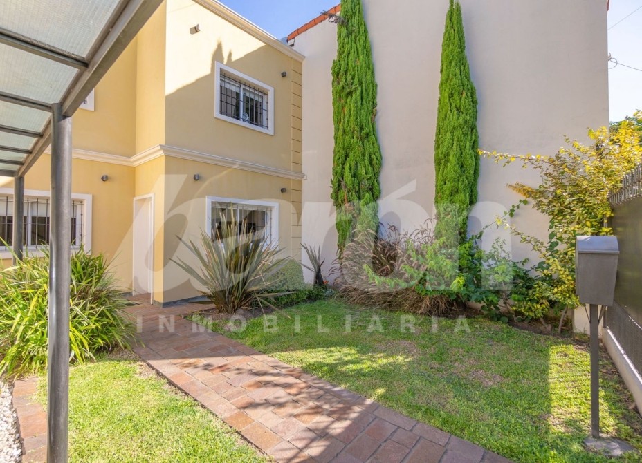 Al frente cuenta con jardín y portón automatizado para el ingreso vehicular, brindando comodidad y seguridad. En planta baja, al ingresar, encontramos un amplio y luminoso living comedor con pisos de porcelanato , toilette de recepción y una habitacion de servicio que podria utilizarse tambien como escritorio u oficina  . A continuación se dispone la cocina comedor diario, equipada con muebles bajo y sobre mesada de gran capacidad de guardado, mesada de granito y ventana que favorece la ventilación natural. Desde este sector se accede a un lavadero independiente con preinstalación para lavarropas y salida a un hermoso patio con espacio parquizado, pérgola semicubierta con parrilla ideal para reuniones y un cuarto de guardado.