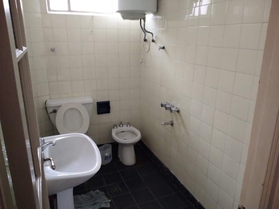 Baño de 2,30 x 1.35, piso cerámico, con termotanque eléctrico.