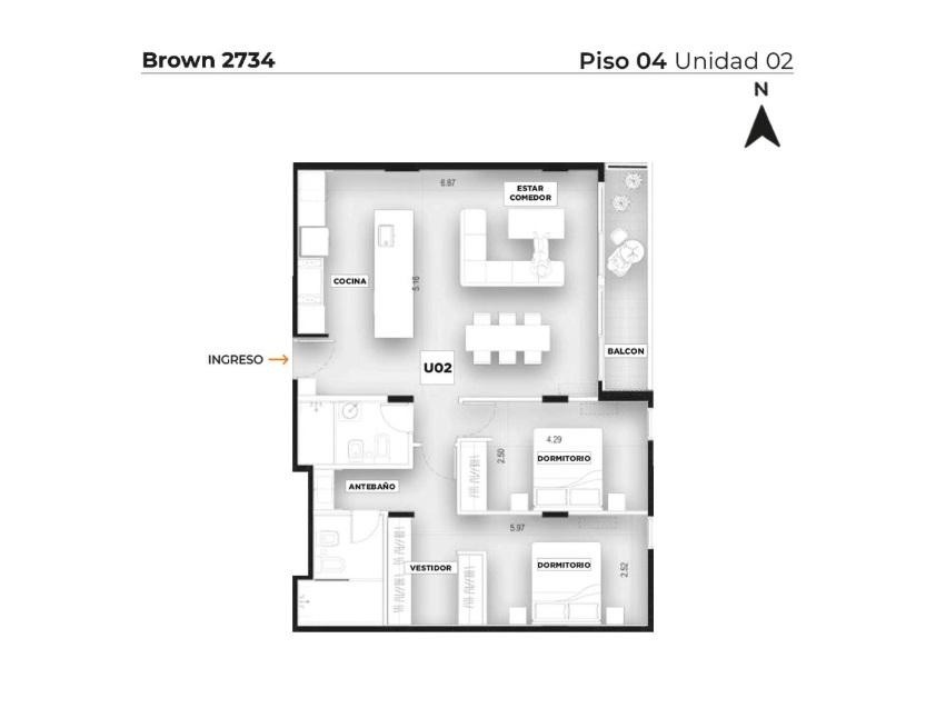 ¡Bienvenido al corazón de Pichincha! Descubre este magnífico departamento de 2 dormitorios en venta, ubicado en Brown 2734, Piso 4, Unidad 3. Este moderno espacio ofrece un living comedor amplio y luminoso, con cocina semi-integrada por una elegante barra. El dormitorio principal es una suite con vestidor, mientras que el segundo dormitorio cuenta con un práctico placard. Ambos baños son completos y de primera calidad.