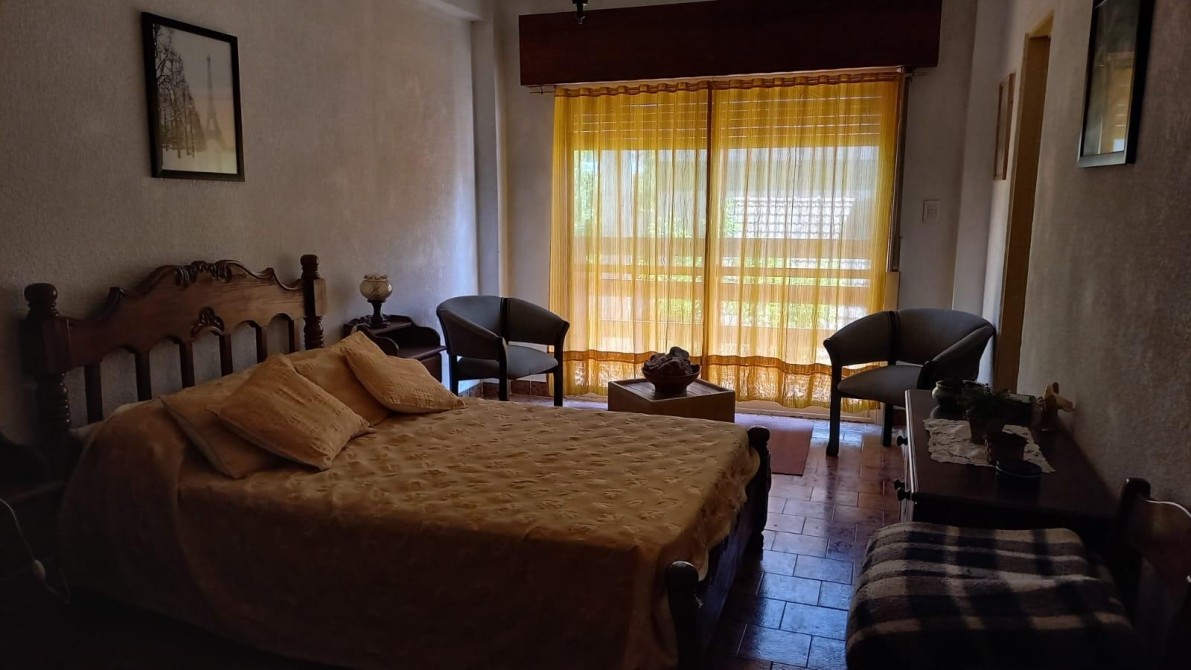 DEPARTAMENTO DE TRES AMBIENTES - PRIMER  PISO POR ESCALERA - LIVING COMEDOR - COCINA - DORMITORIO - DORMITORIO CON BAÑO EN SUITE - BAÑO - AMOBLADO - A TRES CUADRAS DE LA PLAYA - DOS DEL CENTRO Y PEATONAL - Y UBICADO EN CALLE PRINCIPAL DE SAN BERNARDO -EDIFICIO DE TRES PISOS - EN EL ULTIMO PISO TERRAZA CON PARRILAS COMPARTIDAS -  APROX. 35 AÑOS DE ANTIGUEDAD