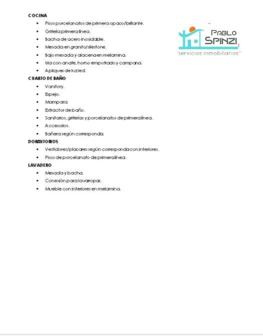 • Sistema de servicio de emergencia eléctrica (manual): para funcionamiento de heladera, tv living y dormitorio principal, modem, torre de isla, luces de ambientes, pasillos y portero eléctrico.