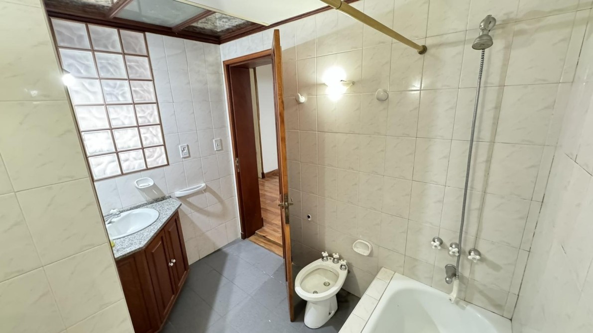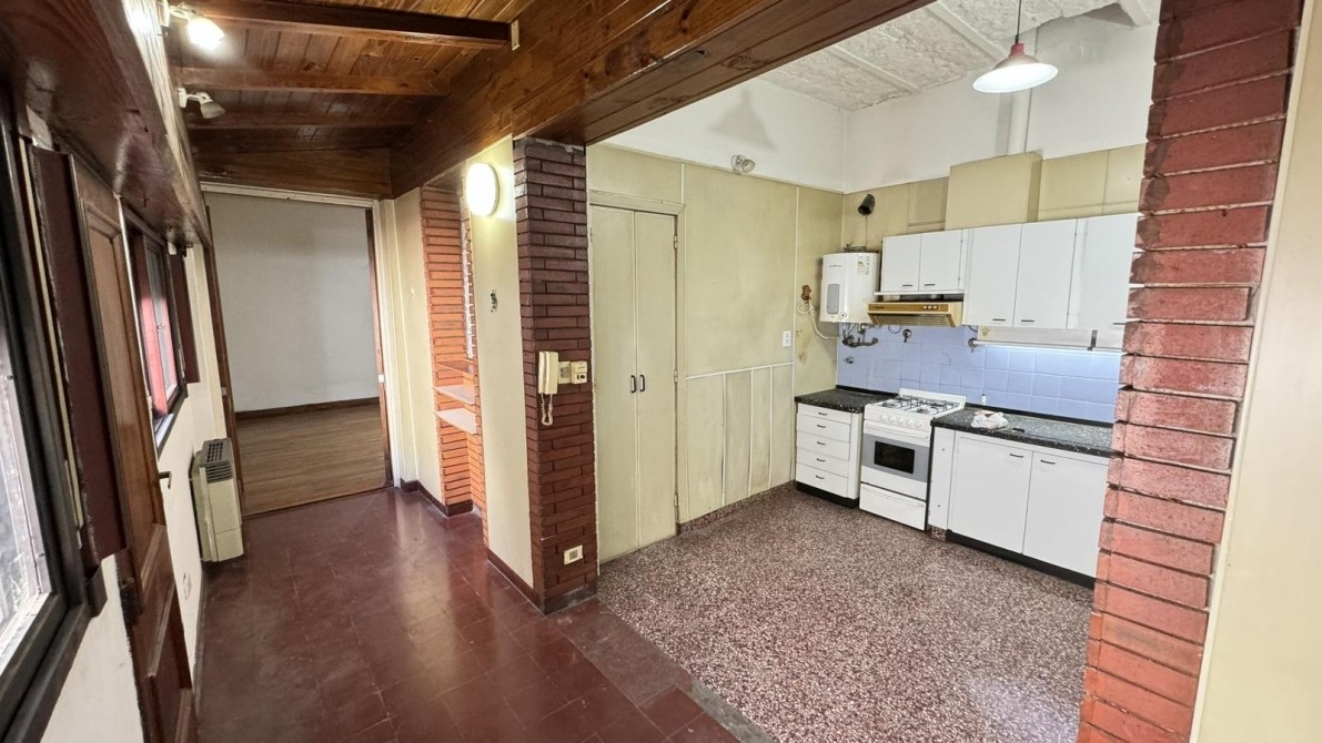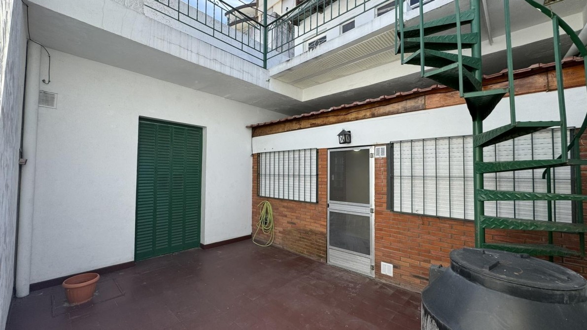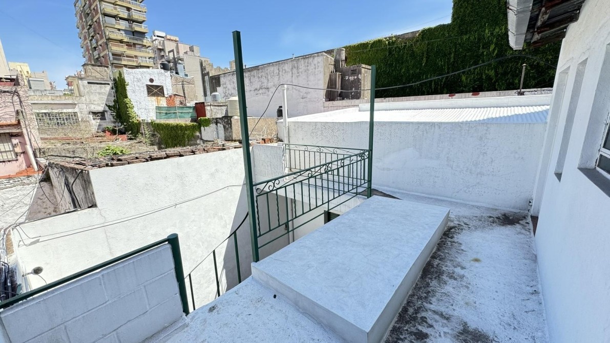 Ingreso por pasillo hacia patio interno propio, escalera hacia terraza con amplio lavadero/cuarto de enseres, en Planta Baja, cocina comedor, pasillo distribuidor, amplio living con pisos de pinotea en muy buen estado, baño completo con mueble empotrado, amplio dormitorio con placard con salida hacia el patio interno.