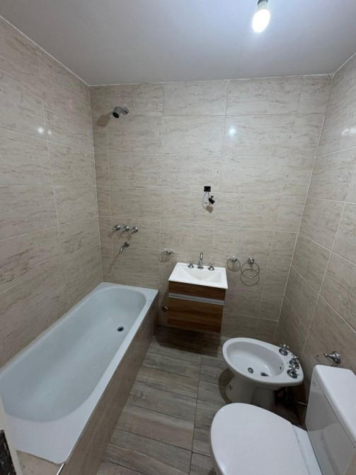 El baño es completo, con bañera y ducha, revestimientos de estilo contemporáneo y grifería de primera calidad. El dormitorio, amplio y confortable, posee ventilación natural y una vista abierta al frente, proporcionando un entorno tranquilo y bien iluminado.