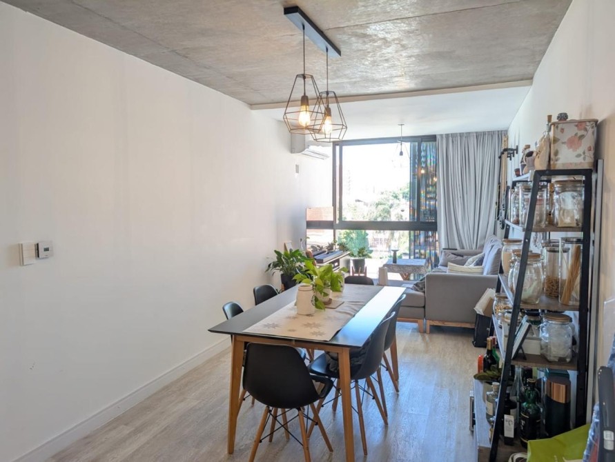 El departamento presenta un diseño moderno y funcional, con cocina integrada mediante barra, totalmente equipada: espacio técnico para heladera y lavarropas, cocina a gas, mesada de granito, bacha de acero inoxidable y grifería monocomando. El luminoso estar-comedor, baño completo y dos dormitorios, con el principal contando con placard con interiores instalados y salida a un pequeño balcón, completan esta atractiva propuesta.