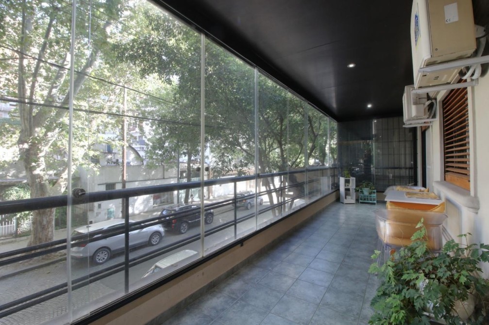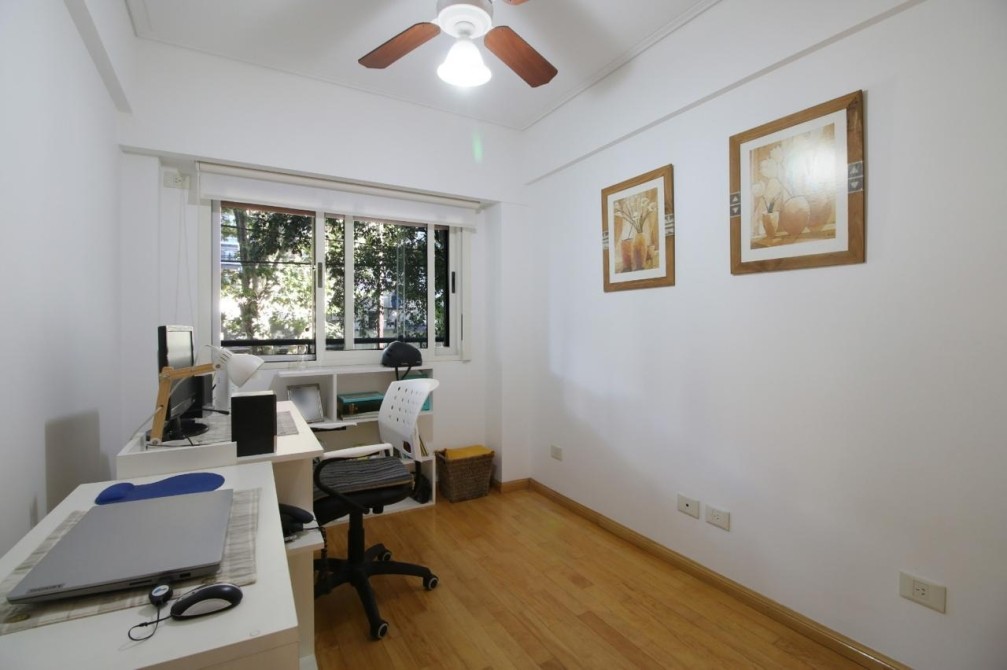 El edificio tiene solo 10 años de antigüedad y cuenta con un ascensor directo a palier privado. La propiedad incluye una cochera cubierta y una baulera, proporcionando espacio de almacenamiento adicional, mientras que las comodidades adicionales incluyen aire acondicionado individual, parrilla, y la posibilidad de tener mascotas, lo que lo hace ideal para familias.