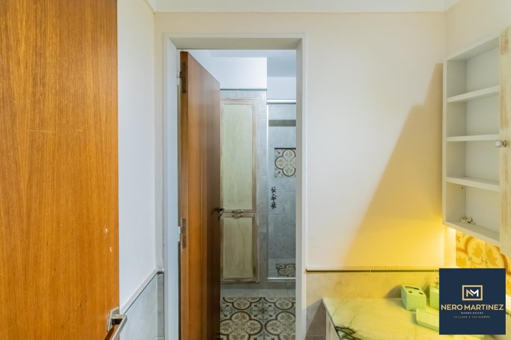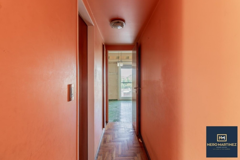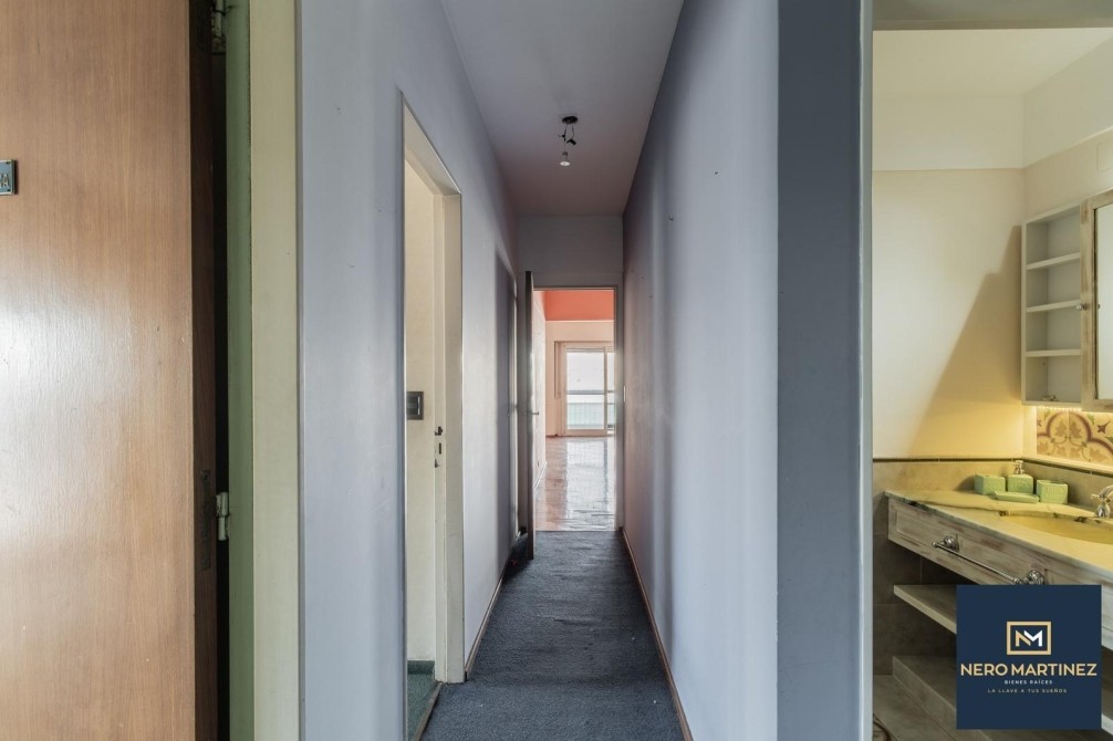 Posee acceso principal a palier privado y entrada de servicio que cuenta con un pasillo de 0,90 x 3,30 metros y placares empotrados. Además, internamente cuenta con otro pasillo de distribución (1,10 x 4,40) con baño y ante baño completo situado en el medio del departamento que conecta zona de descanso con resto de la unidad y por el living, también se puede circular conectando la totalidad de la unidad funcional en forma de "infinito" o de "8".