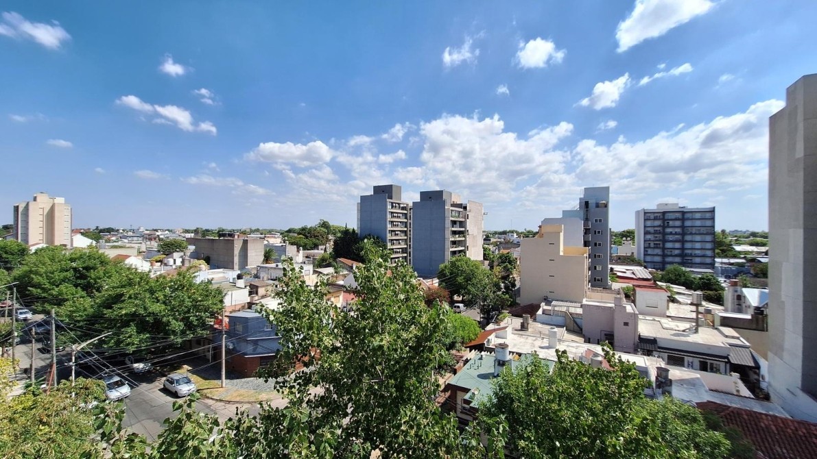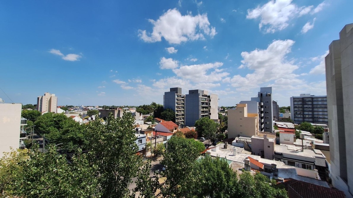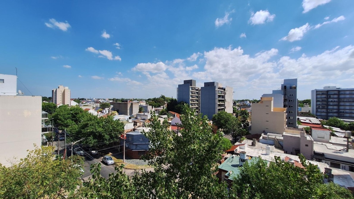 Departamento super luminoso al frente con tres balcones y cochera doble. Ubicado estrategicamente en un de las mejores cuadras de Moron Centro, cercano a todos los comercios del Centro de Moron y con acceso directo a la Estacion. El departamento se ubica en un Piso 5° con excelennte vista, piso completo, no comparte el piso con otros departamento. El departemento se distribuye de la siguiente manera: