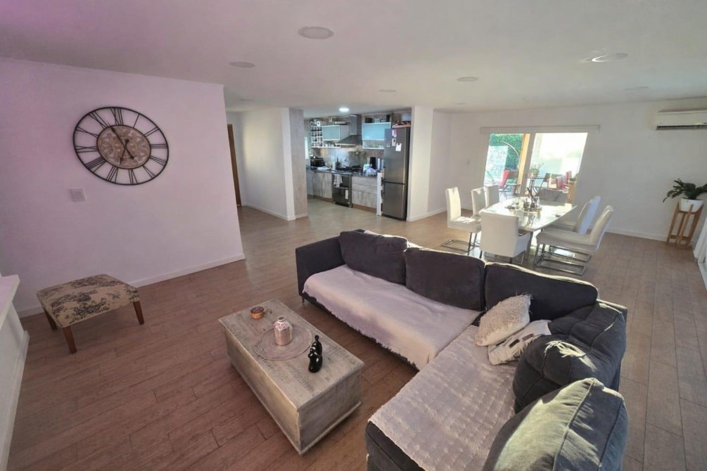 La casa cuenta con un amplio living comedor, ideal para reuniones familiares y sociales, con excelente entrada de luz natural. La cocina, integrada al ambiente, combina diseño y practicidad,