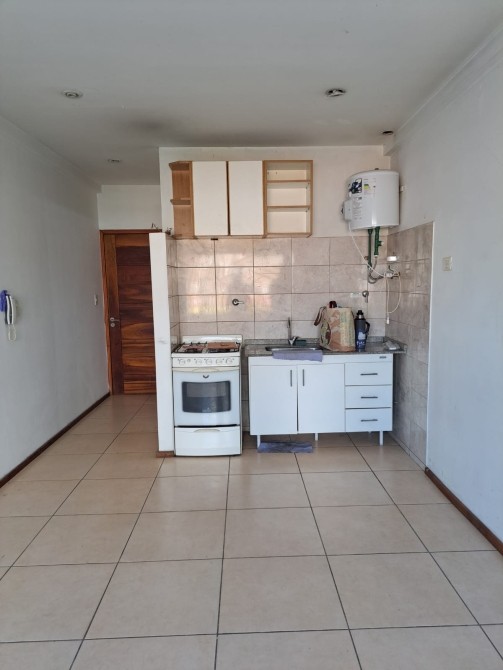 Departamento de un ambiente unico, cocina con mueble bajo y sobre mesada y baño completo.