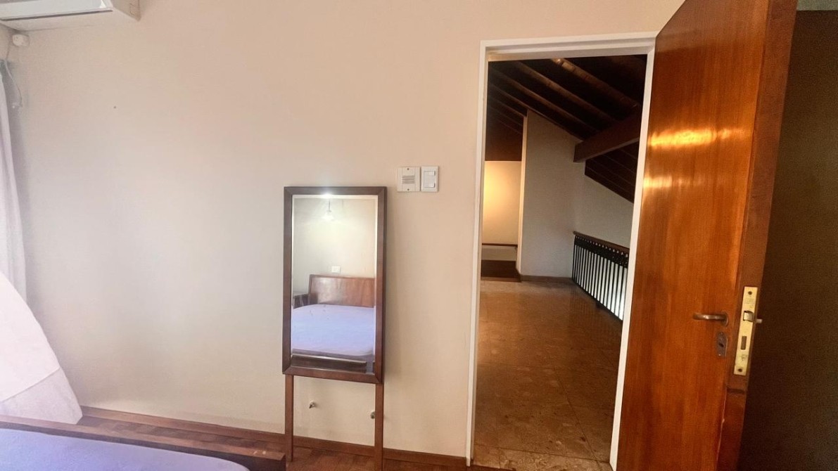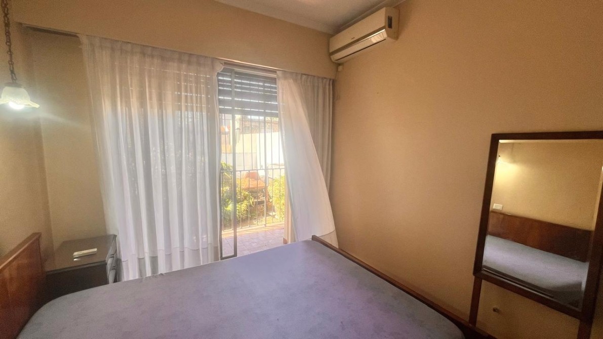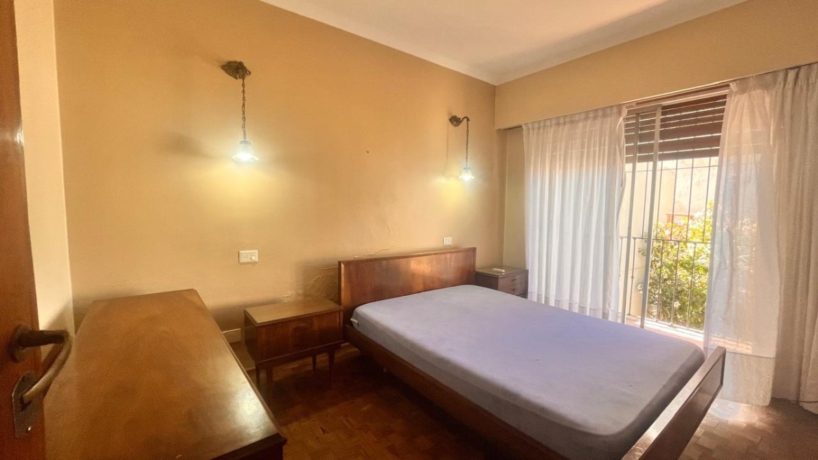 - Un dormitorio con placard de pared a pared y ventana con vista al jardín.• El dormitorio principal, con vestidor y salida a un balcón que también mira al parque.