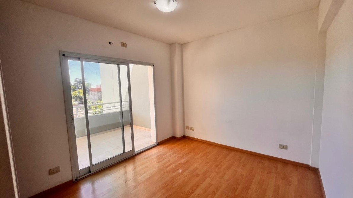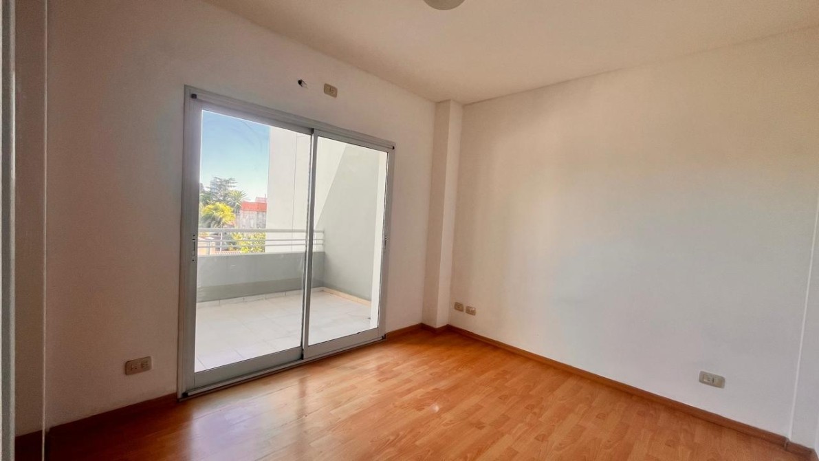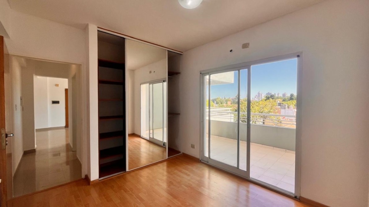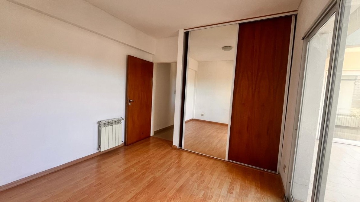 - El dormitorio es amplio y cómodo, cuenta con placard empotrado con interiores completos y ventana balcón que da acceso a un gran balcón corrido al frente, que rodea toda la fachada del departamento y brinda un espacio exterior muy disfrutable.