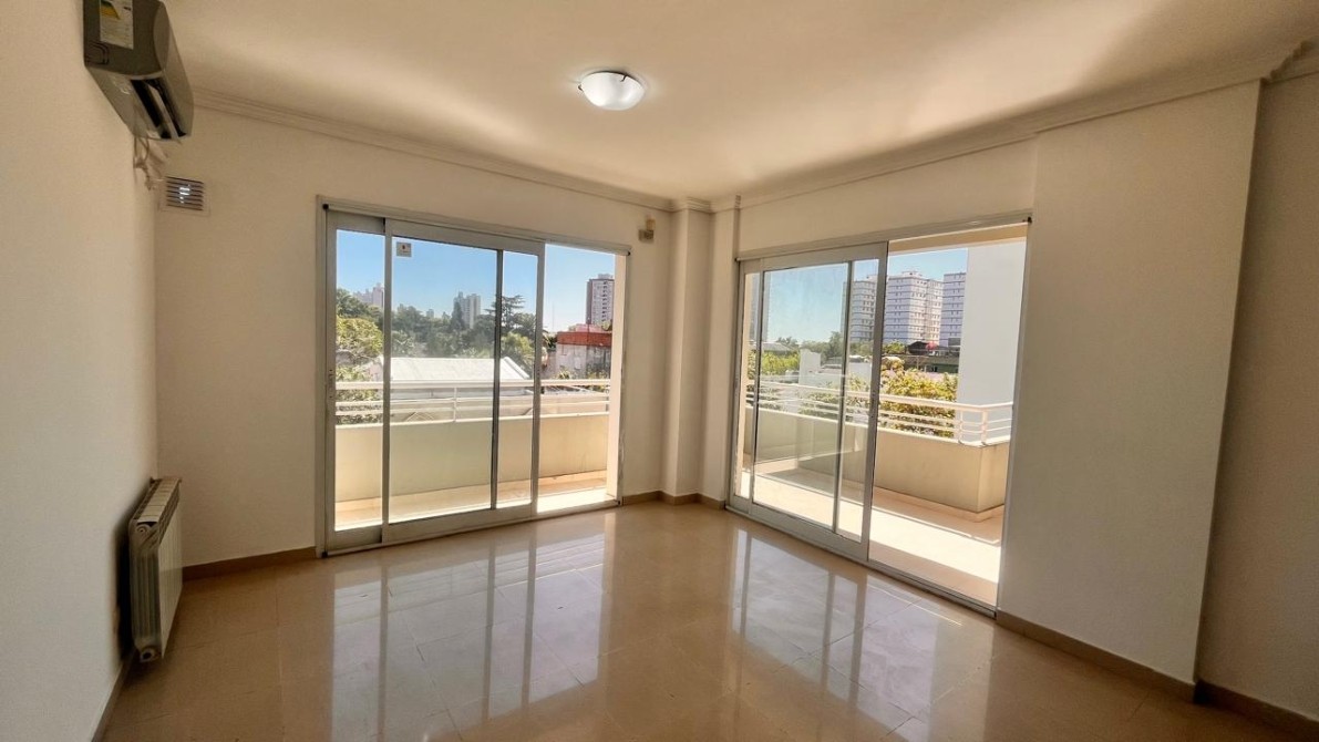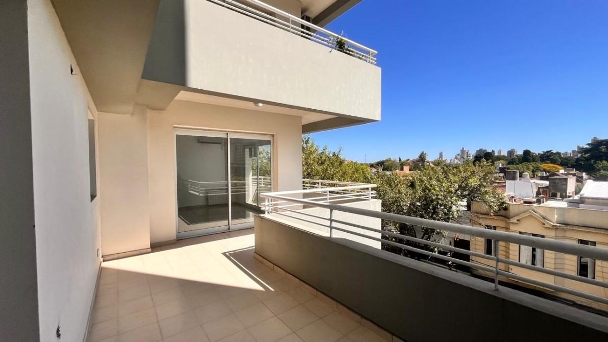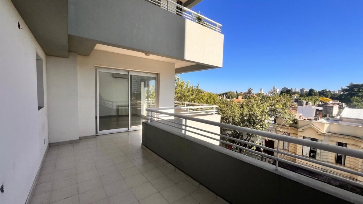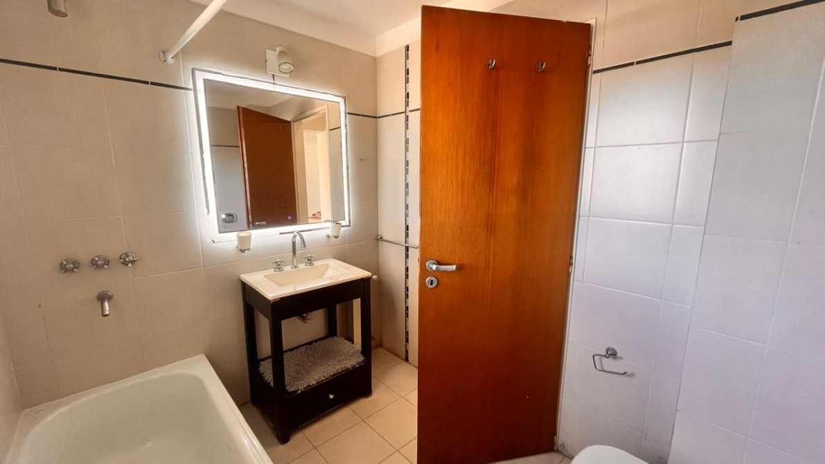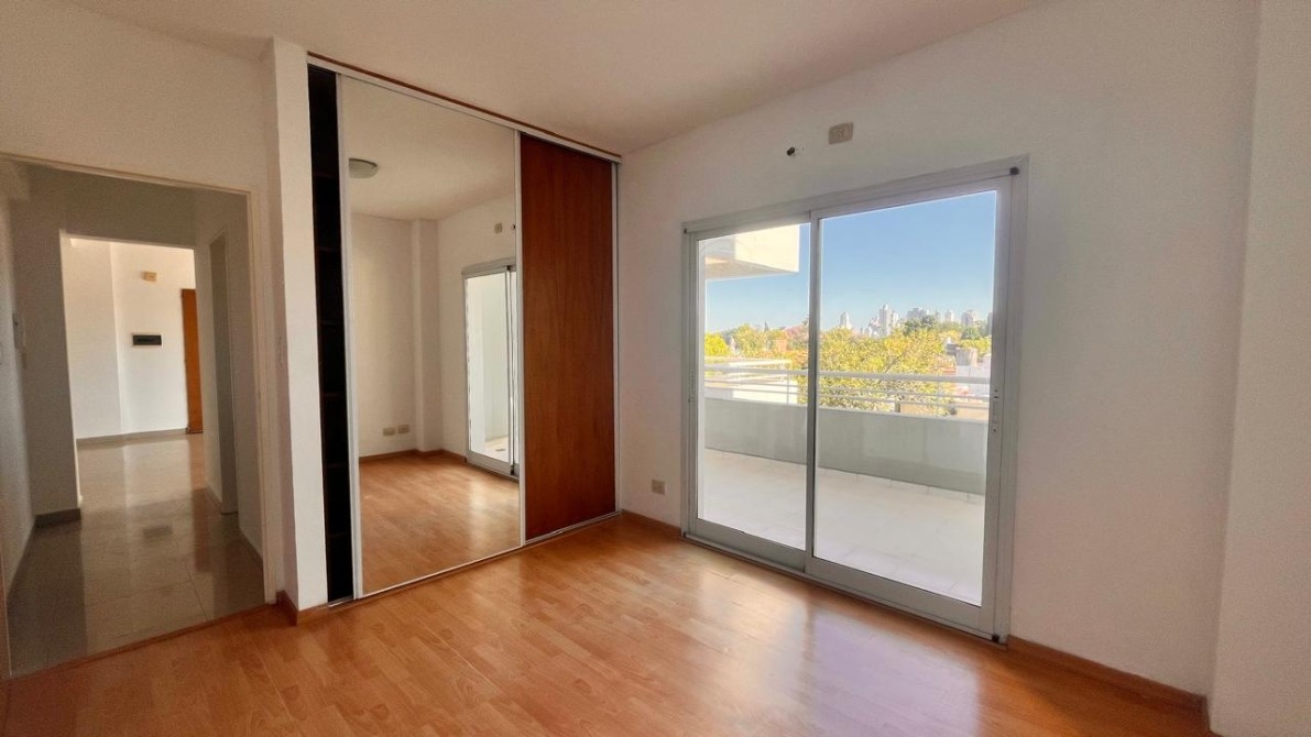 - El dormitorio es amplio y cómodo, cuenta con placard empotrado con interiores completos y ventana balcón que da acceso a un gran balcón corrido al frente, que rodea toda la fachada del departamento y brinda un espacio exterior muy disfrutable.