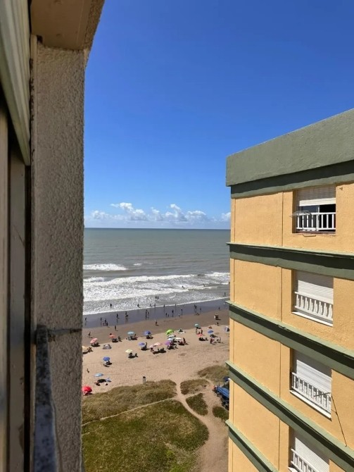 Departamento de 40 m² totales y cubiertos, ubicado en un edificio con vista directas al mar. La unidad cuenta con un dormitorio, un baño completo y una cocina independiente equipada con muebles bajo mesada y alacena. El ambiente principal se presenta como un espacio integrado de comedor y estar, con ventanales que permiten la entrada de luz natural y ofrecen una vista lateral hacia la playa. El dormitorio dispone de placard empotrado y ventana al exterior. El baño está revestido en cerámicos y equipado con los artefactos esenciales. El edificio admite mascotas, lo que brinda mayor flexibilidad para quienes conviven con animales.