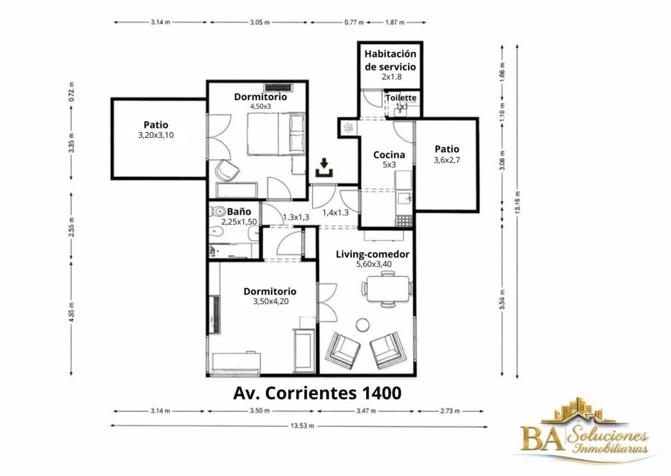 • La presente venta se realiza “Ad-Corpus”. Las medidas y superficies aquí detalladas son meramente orientativas; las definitivas surgirán del plano de subdivisión y de la escritura respectiva del bien, por lo que las enunciadas no resultan vinculantes.SALE – 3-ROOM APARTMENT WITH 2 PATIOS AND SERVICE ROOM IN SAN NICOLÁS