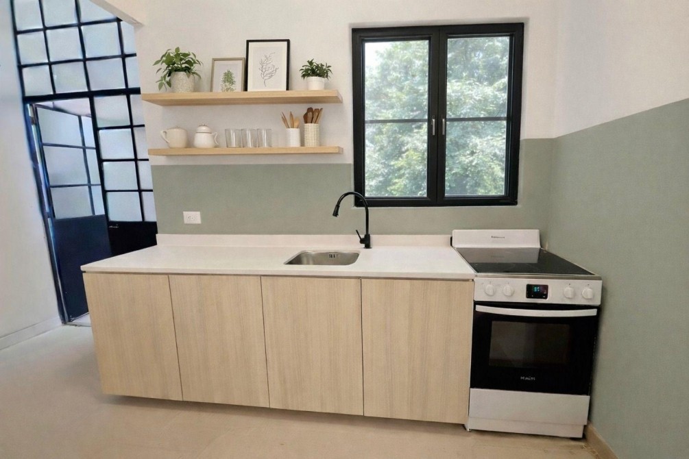• Cocina independiente (5 x 2,9) a gas, con agua caliente central