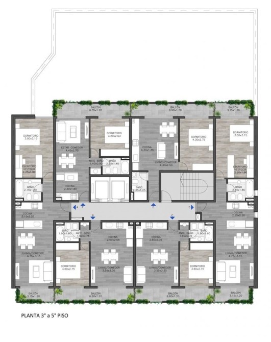 Desde el segundo piso se desarrollan unidades de vivienda de uno, dos y tres dormitorios con terminaciones de alta calidad.