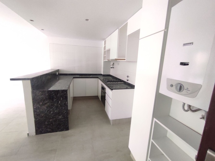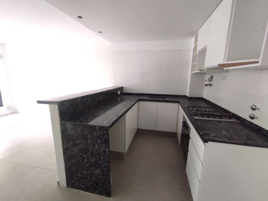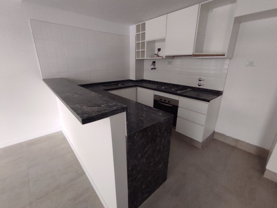 Cocina, semi integrada al espacio principal, cuenta con generoso amoblamiento en bajo mesada y alacena, equipada con un anafe de 4 hornallas y horno embutido. El piso porcelanato aporta elegancia y durabilidad al área. Las aberturas con DVH (Doble Vidrio Hermético) aseguran aislamiento térmico y acústico.